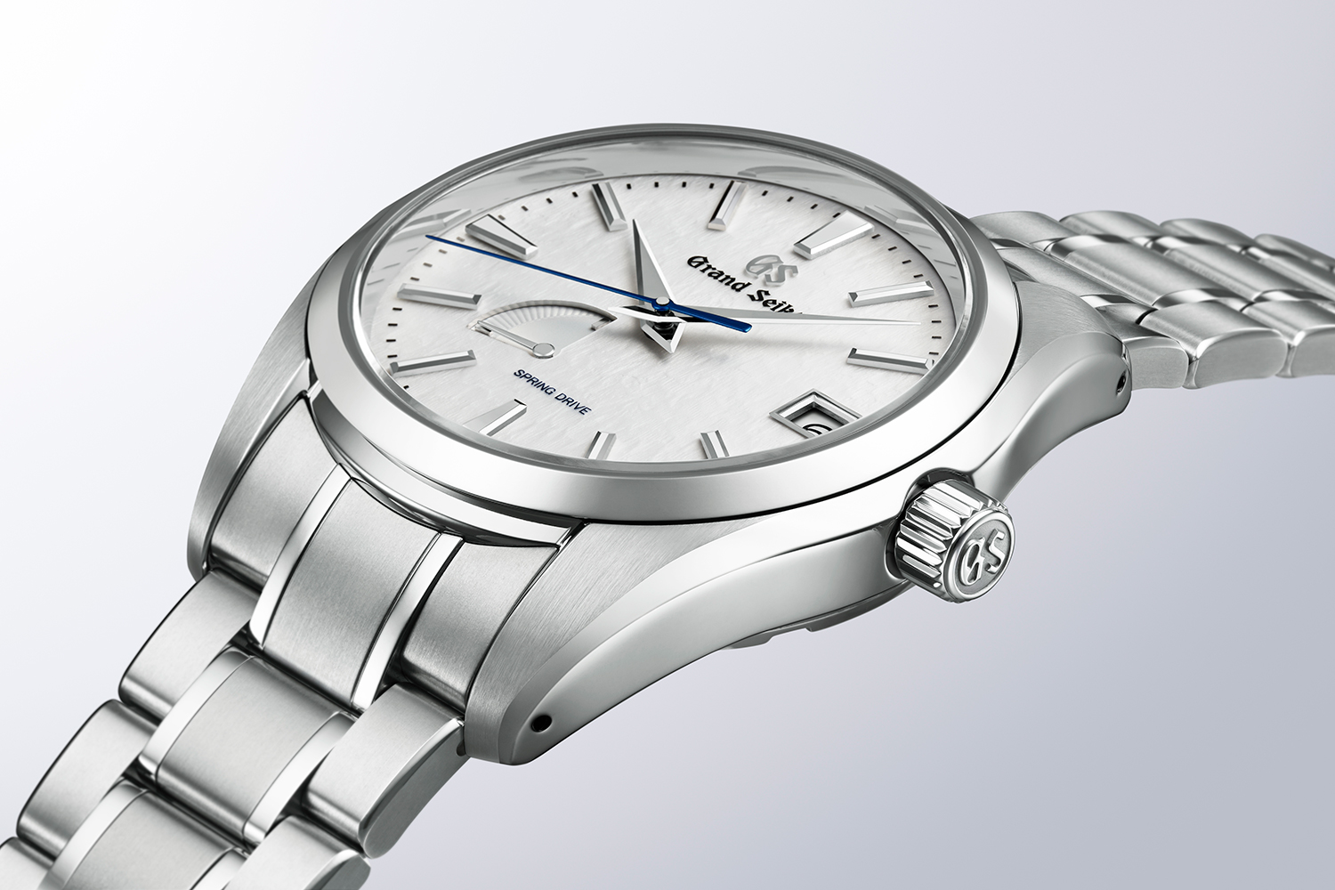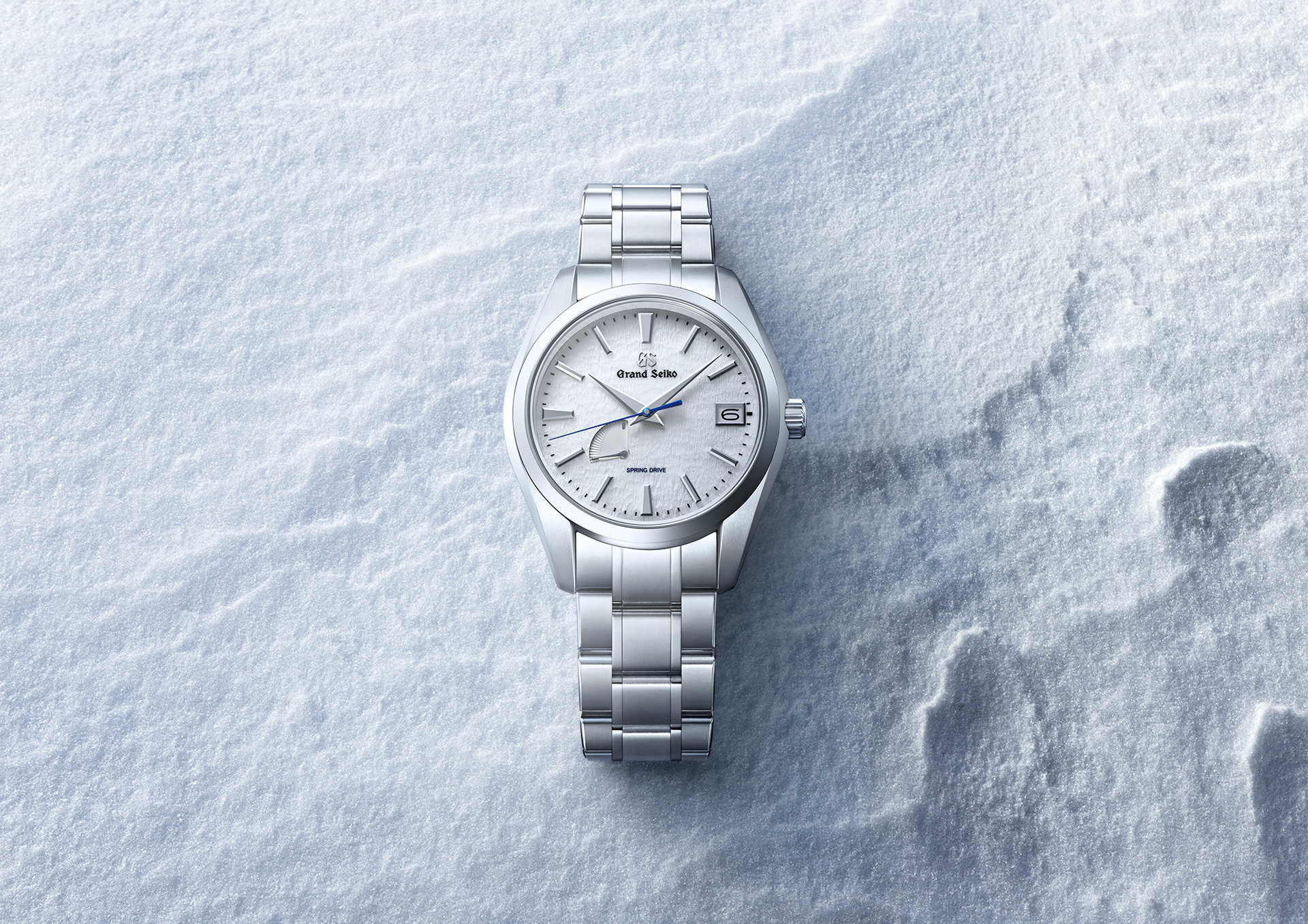ひんやりと乾いた空気の中で、風に吹かれた雪面は、繊細な風紋をつくりあげます。このモデルは、「雪白パターン」と呼ばれる、その雪面を表現したダイヤルパターンを使用し、その上ブルースチールの秒針が、スプリングドライブ独自のスイープ運針によって流れ、連続する自然な時の流れを美しくあらわします。